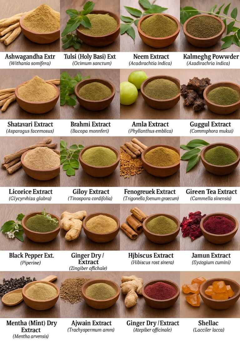 Indian herbal extracts are globally recognized for their purity, potency, and deep connection to ancient Ayurvedic science, making them unique compared to extracts from other parts of the world. India’s diverse climate and rich biodiversity provide access to thousands of medicinal plants, which are cultivated using traditional, chemical-free practices and then processed with advanced extraction technologies like hydro-alcoholic and CO₂ methods. This fusion of age-old cultural knowledge and modern science ensures extracts with high bioactive concentration, standardized purity, and safety for skincare formulations. From turmeric rich in curcumin to soothing aloe vera and antibacterial neem, Indian herbal extracts deliver natural efficacy that aligns perfectly with global clean beauty standards, while carrying the wisdom of a 5,000-year-old tradition of holistic wellness.